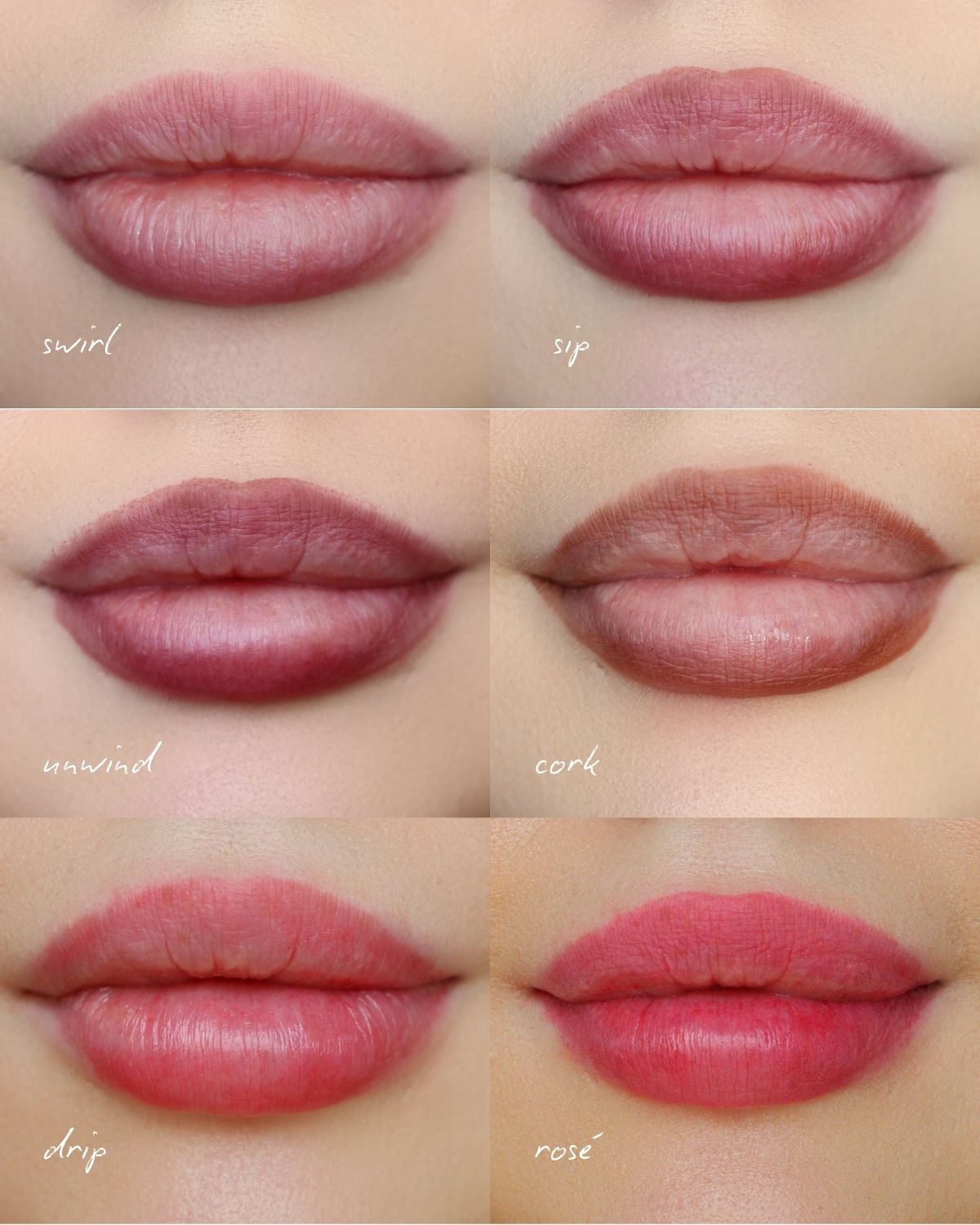 Got a shade “sip”, dries and peels off in less than 5 minutes. Make sure to really moisturize your lips before applying. Still has a red tint so apply it with a light even layer. Stays all day even after eating!